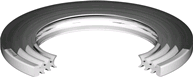 Notice the ribs are crescent shaped. At the crescent top, the ribs contact the surface, not at an angle, but flat- so no more damage can be caused to the flange. At the crescent bottom, the root is strong and resilient .In comparison, the spiral wound gasket’s metal strip is compressed at a 45 degree angle toward the flange. With even stronger and sharper teeth biting into the surfaces, camprofile gaskets cause the worst damage to flange surfaces. Many of the flanges damaged in this way are very expensive to replace.