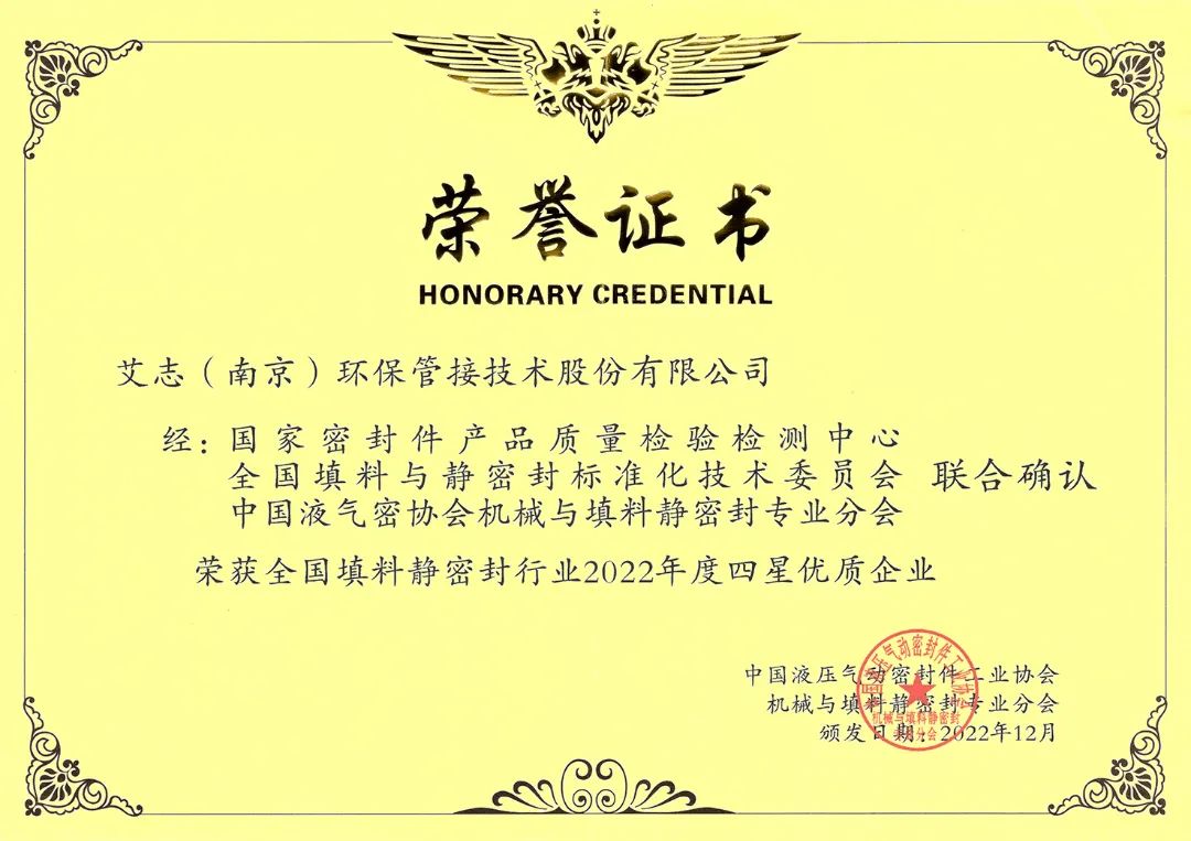 憑著公司金屬墊片、非金屬墊片、復(fù)合增強墊片、模壓填料、編織填料等等產(chǎn)品的精湛質(zhì)量、良好的用戶聲譽以及相關(guān)生產(chǎn)活動的規(guī)范運營,經(jīng)大會審查評議,授予我司 “全國填料靜密封行業(yè)2022年度四星優(yōu)質(zhì)企業(yè)”稱號;??