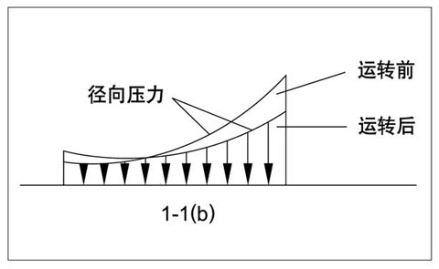 填料對軸的壓緊力通過擰緊壓蓋螺栓產(chǎn)生。由于填料是彈塑性體,當受到軸向壓緊后,產(chǎn)生摩擦力致使壓緊力沿軸向逐漸減少,同時所產(chǎn)生的徑向壓緊力使填料緊貼于軸表面而阻止介質(zhì)外漏。徑向壓緊力的分布如圖1-1(b)所示,其由外端(壓蓋)向內(nèi)端,先是急劇遞減后趨平緩,介質(zhì)壓力的分布如圖1-1(c)所示,由內(nèi)端逐漸向外端遞減,當外端介質(zhì)壓力為零時,則泄漏很少,大于零時泄漏較大。