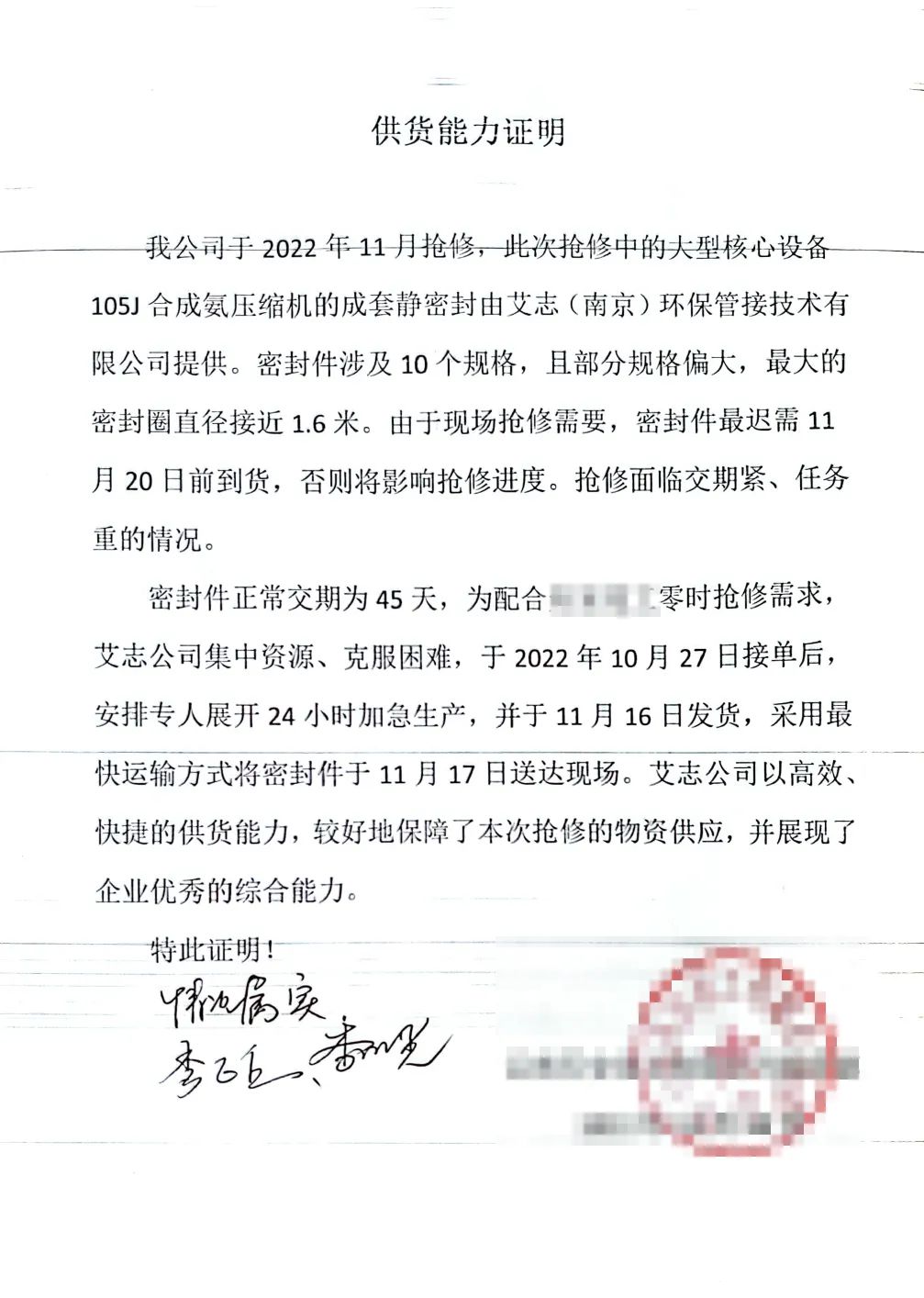 在本次檢修中,公司集中資源,克服一切困難配合客戶完成檢修任務(wù),幫助客戶實現(xiàn)了核心進口設(shè)備密封備件完美國產(chǎn)化,獲得了客戶的一致好評。