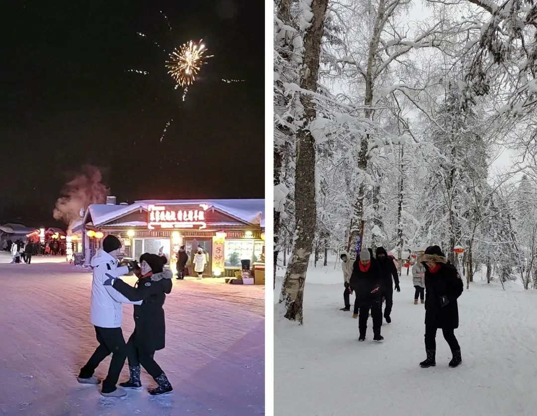 在雪鄉(xiāng)的星空下,在濃濃的春節(jié)氛圍中,在絢爛煙花的背景下,這些來自南方的朋友時而放歌,時而起舞,歡樂非?!?